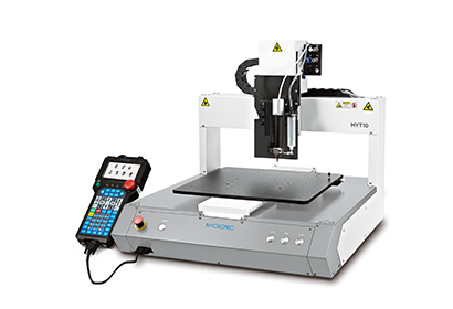 Axxon Mycronic MYT10 provides small-batch manufacturers small-batch manufacturers a selection of simple, robust tabletop dispensing robots with varying levels of capabilities for basic dispensing applications.