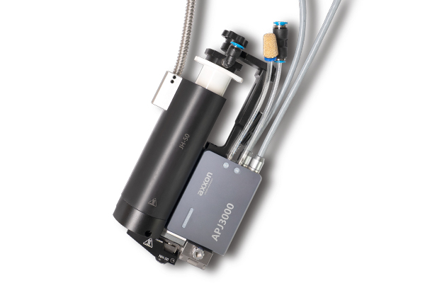 The APJ3000 piezoelectric valve is a high-performance injection valve developed by Axxon for materials that require a high temperature setpoint to either melt or reach a viscosity where it can be jetted. Fully heat controlled fluid paths enable difficult applciations such as precise hot melt jetting.